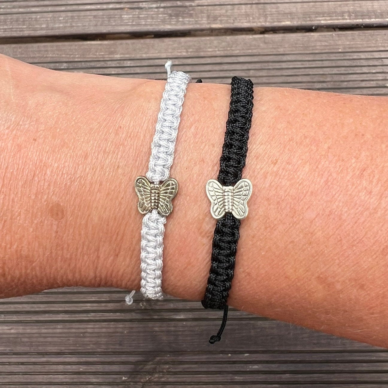 Embrace the beauty of nature with this stunning Butterfly Bracelet, a delicate symbol of transformation and freedom. 🌸 Each Nature Bracelet is handcrafted with high-quality nylon string, giving it strength, comfort, and a smooth, elegant finish. Designed as an Adjustable Macrame Friendship Bracelet, it easily fits any wrist—perfect for sharing with friends or loved ones. This bracelet is waterproof, so you can wear it while swimming, showering, or exploring the outdoors without worry. The charming butterfly centerpiece adds a whimsical, nature-inspired touch that complements both minimalist and boho styles. Whether you’re celebrating friendship, love, or personal growth, this bracelet is a meaningful accessory for any occasion. Wear your handmade nylon butterfly bracelet daily as a reminder of beauty, resilience, and transformation. 🦋