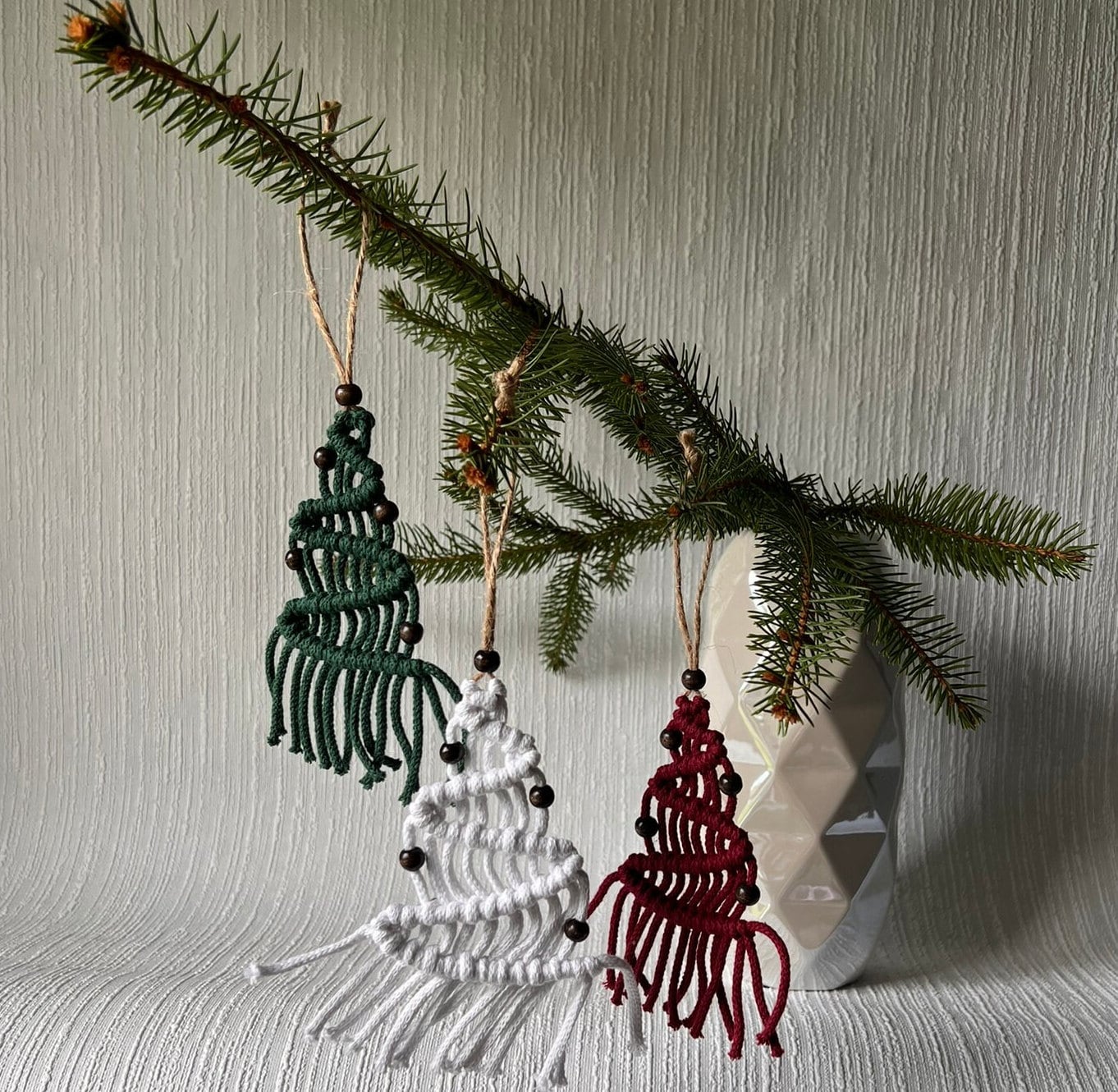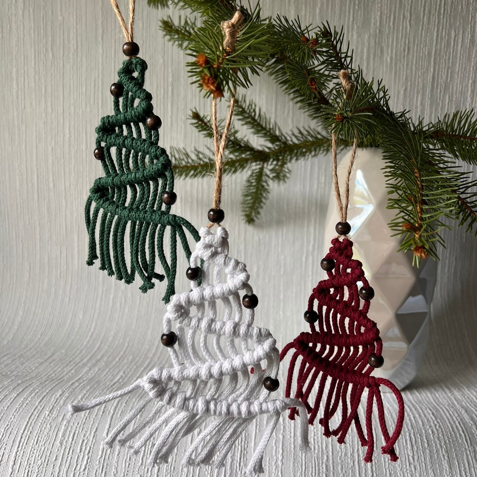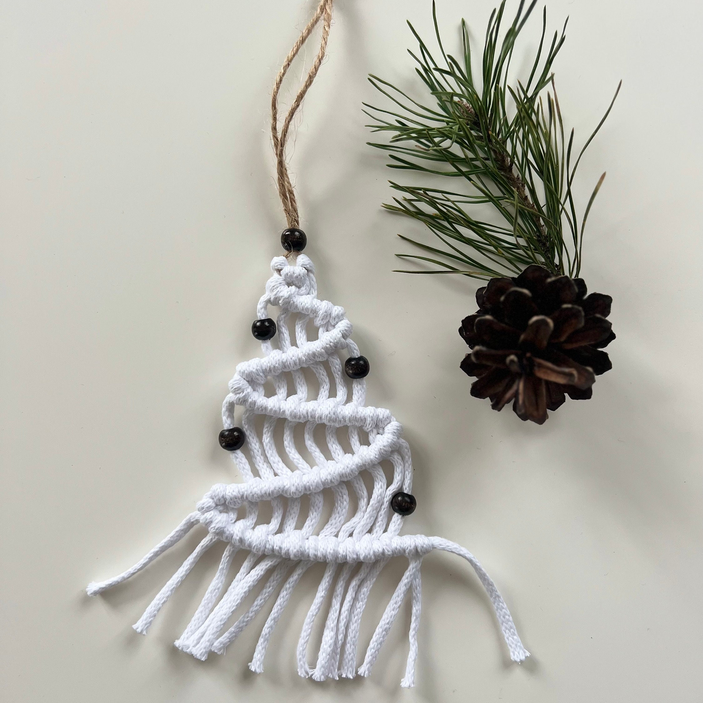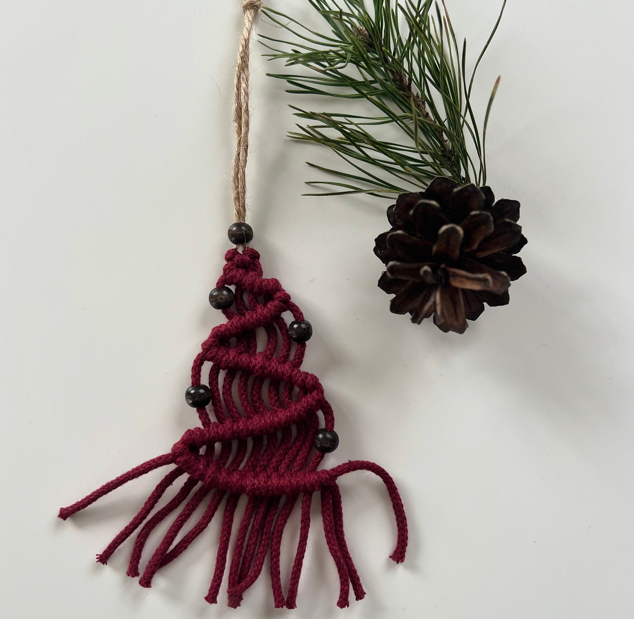 Add a touch of boho charm to your holiday season with this handmade macrame Christmas tree, the perfect accent for any festive space. Whether you're looking to enhance your Christmas tree decorations or searching for unique Christmas home decor, this piece brings warmth and style to your home. Carefully crafted with natural materials, it adds a cozy, rustic feel to your winter decorations. Hang it on your tree, wall, or mantle for a delightful seasonal vibe. Its minimalist design blends effortlessly with any holiday theme, making it a versatile Christmas tree decoration. This macrame tree is not only a beautiful ornament but also a sustainable option for eco-conscious shoppers. Elevate your Christmas home decor with this charming winter accent today!
