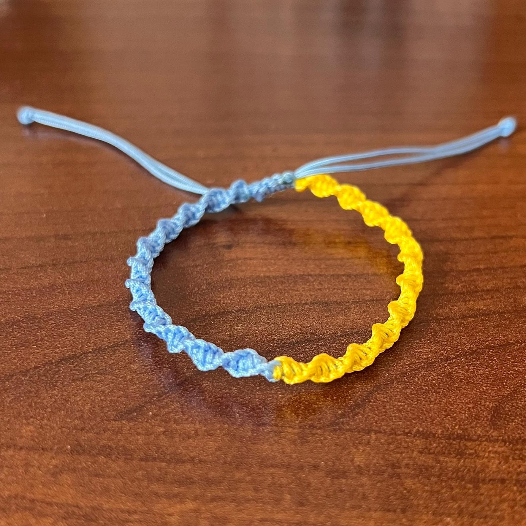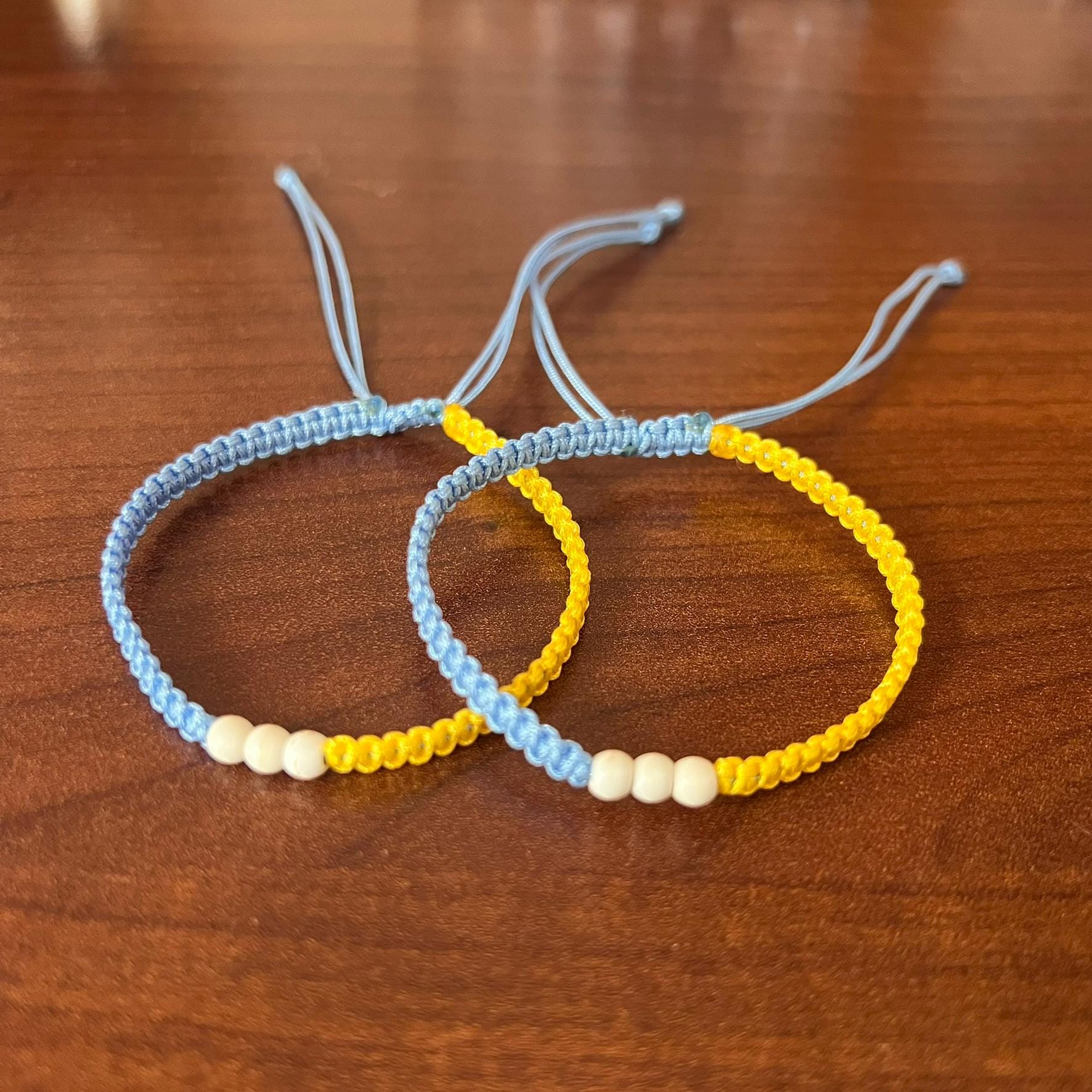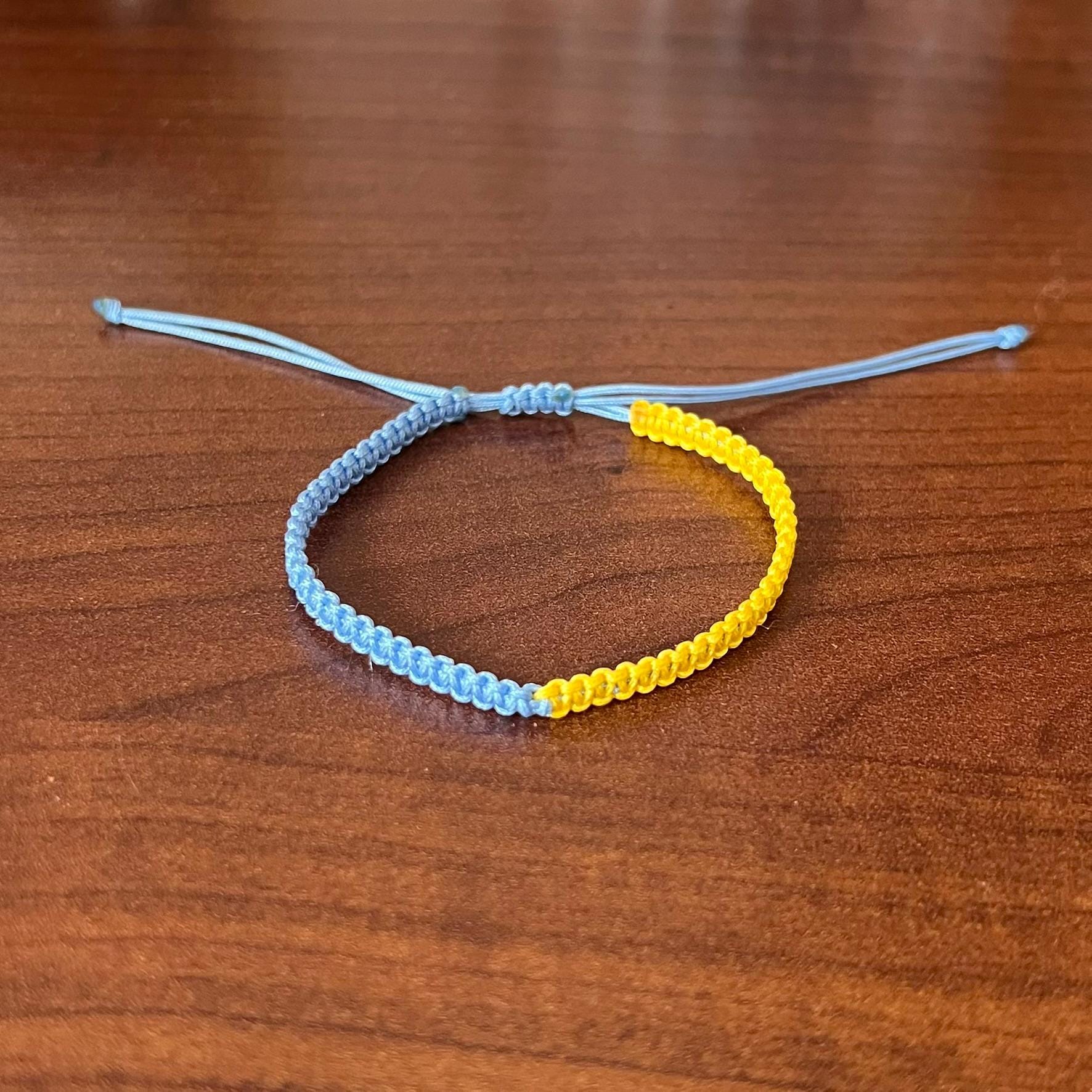 The adjustable sliding knot ensures a great fit for most wrist sizes, making it an easy and thoughtful gift. Blue and yellow symbolize friendship, hope, strength, and unity, making this bracelet ideal for meaningful occasions or simply as a reminder of connection.
