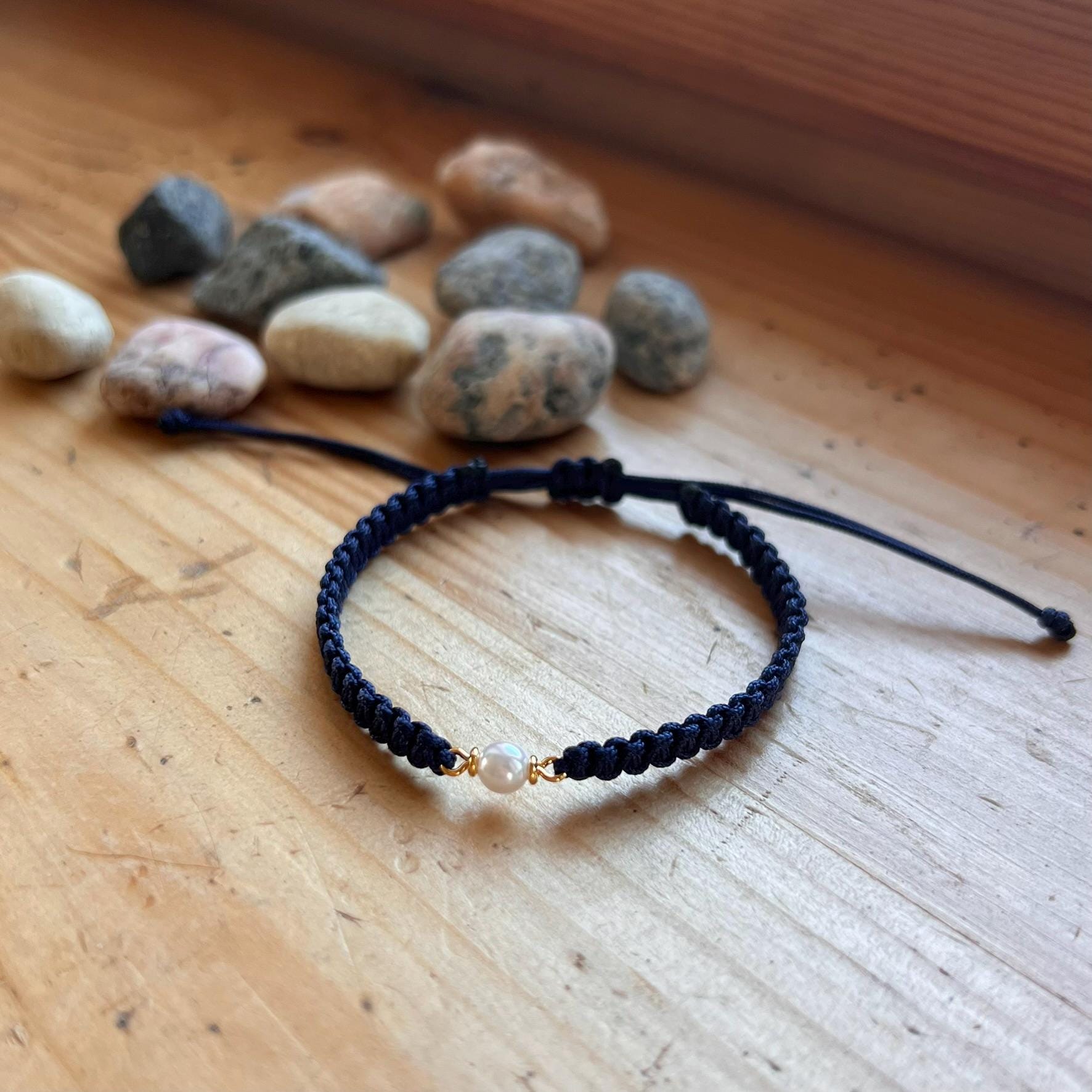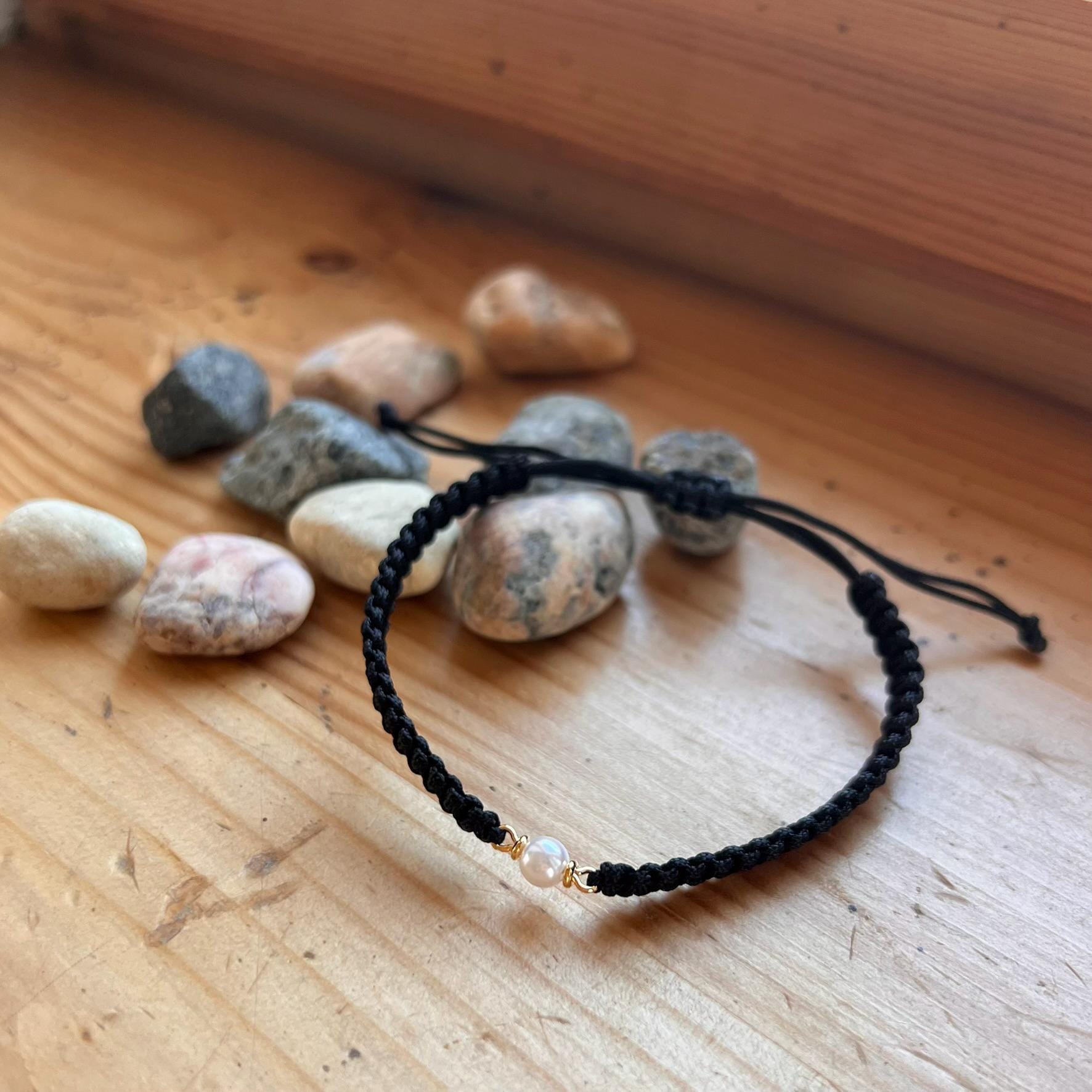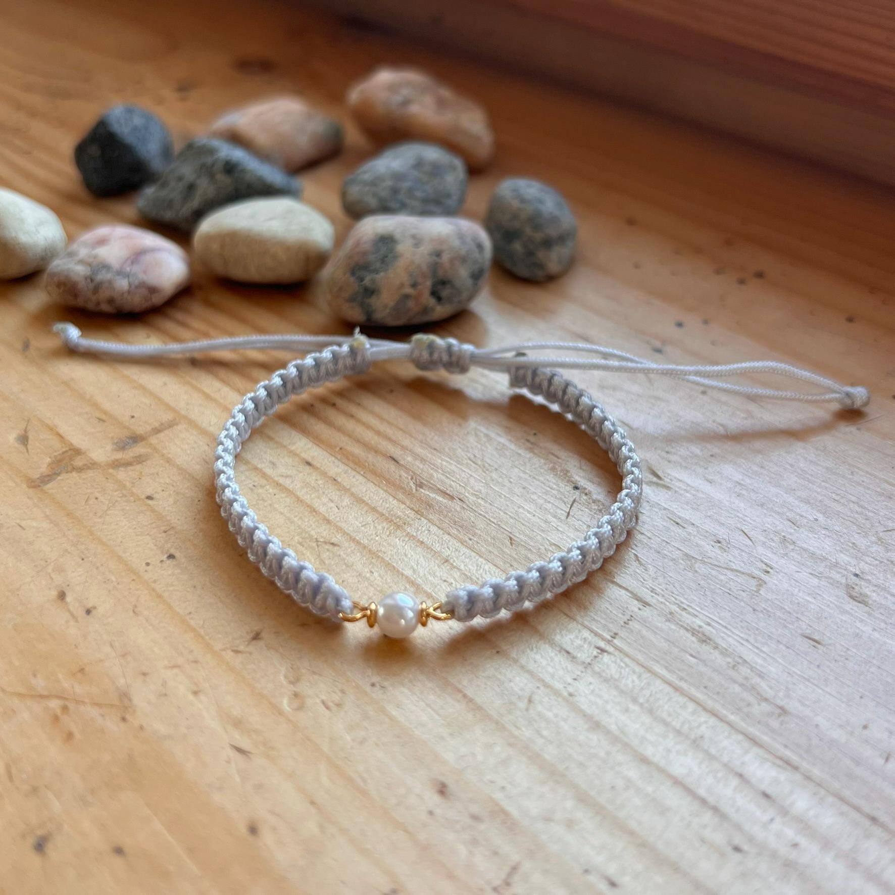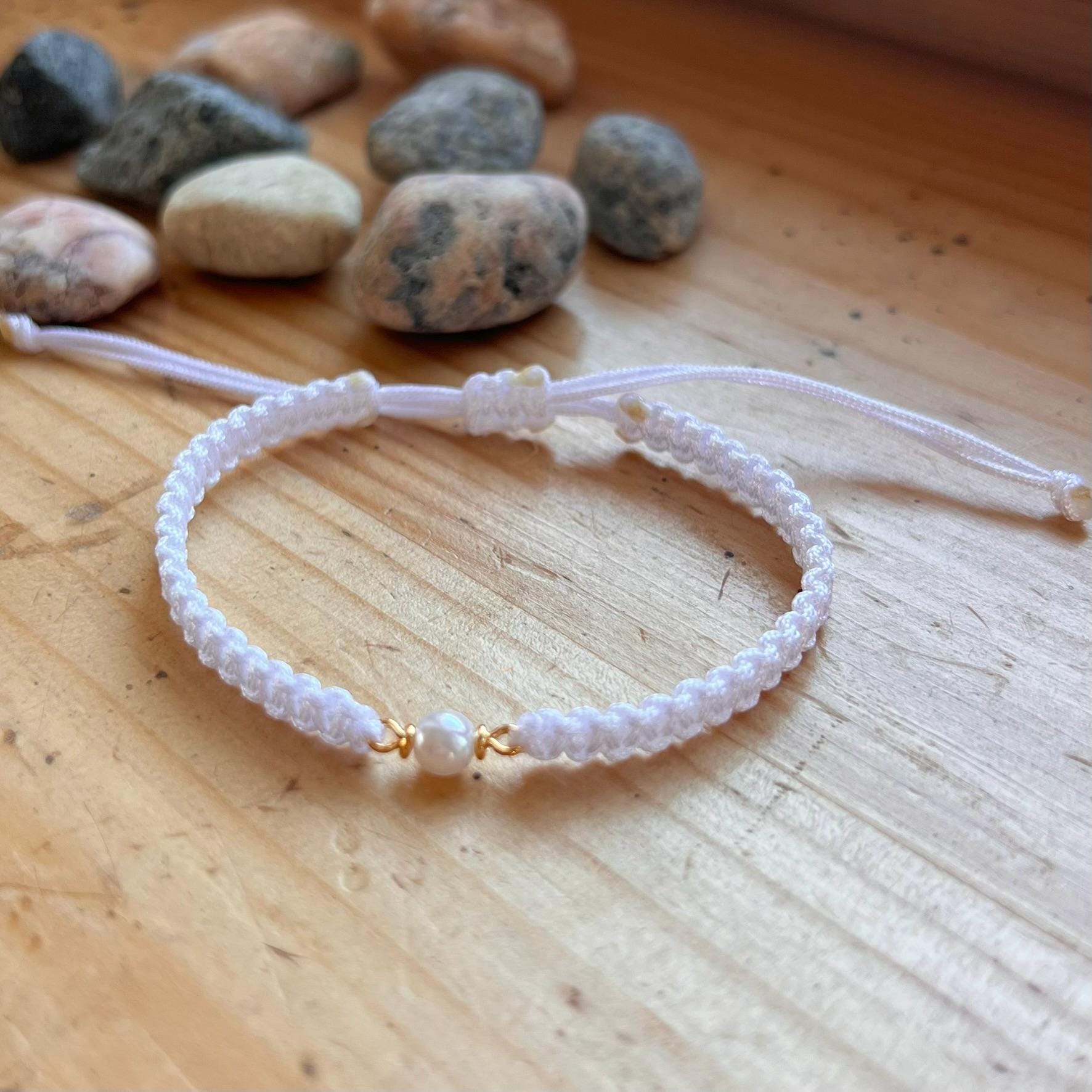Macrame Pearl Bracelet • Handmade Adjustable • Minimalist • Elegant Friendship Bracelet