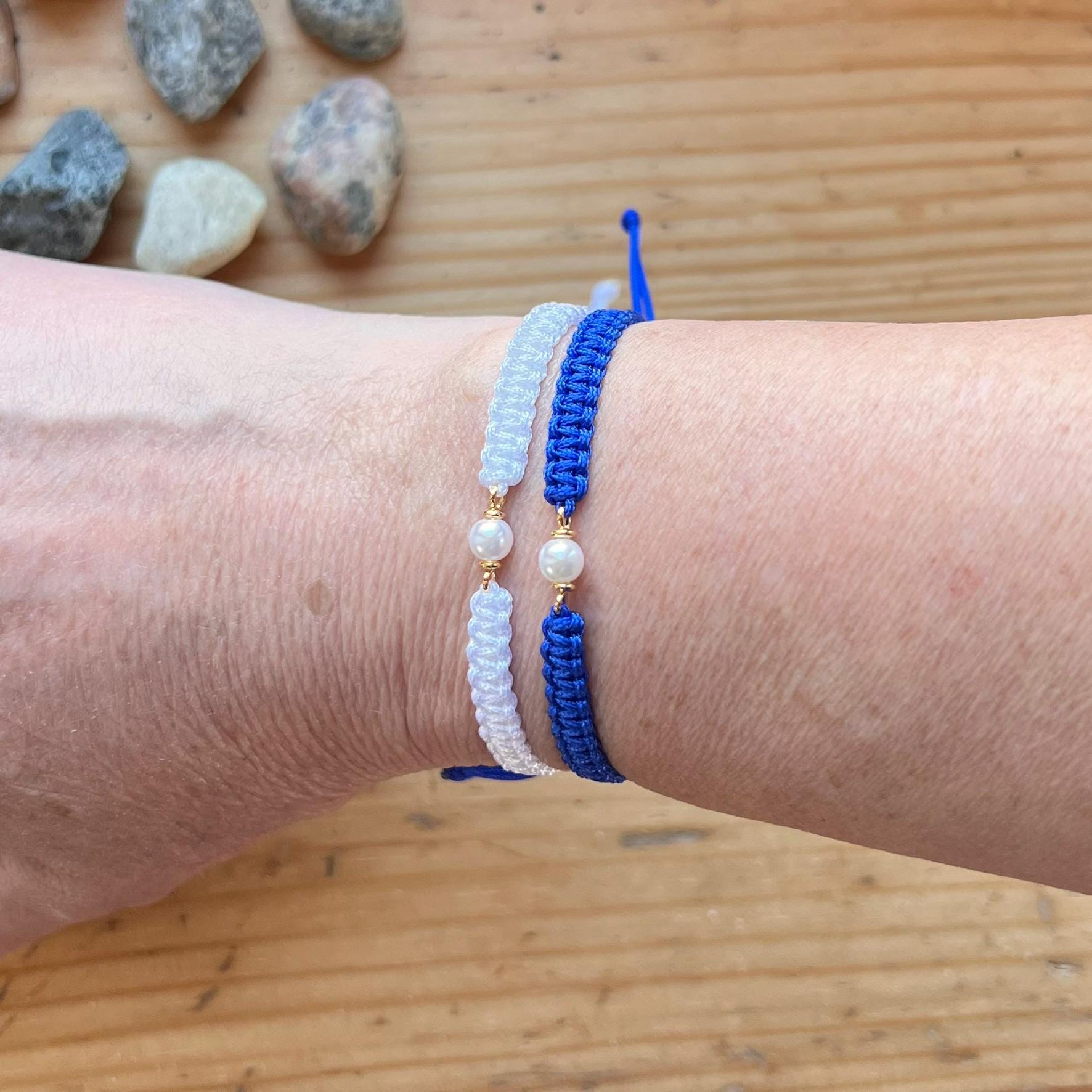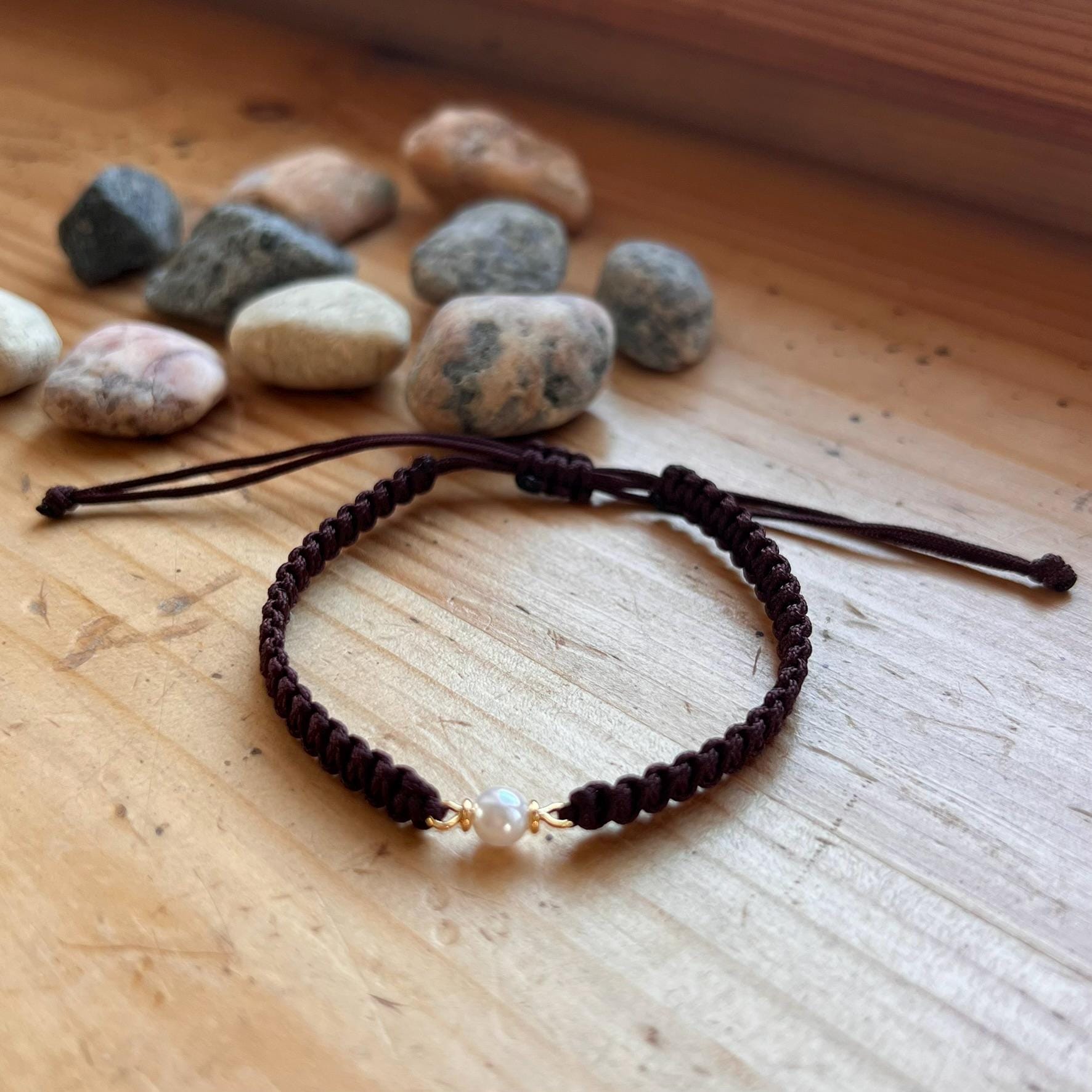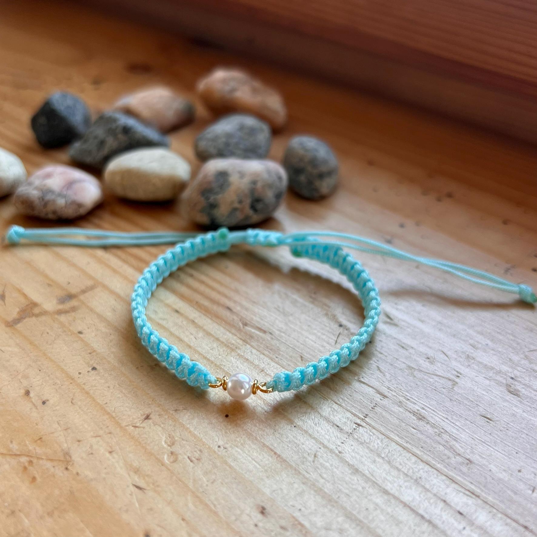 Macrame Pearl Bracelet • Handmade Adjustable • Minimalist • Elegant Friendship Bracelet