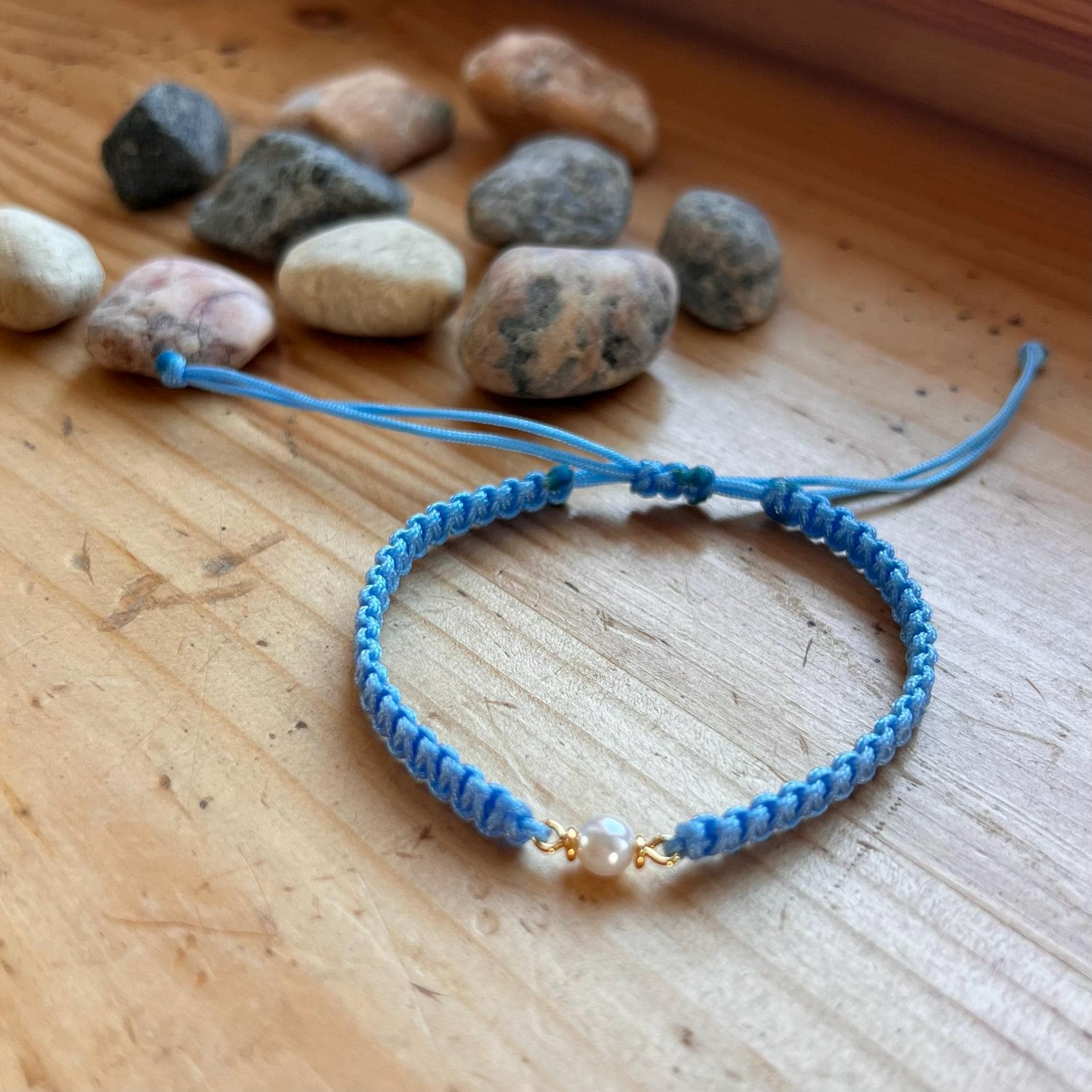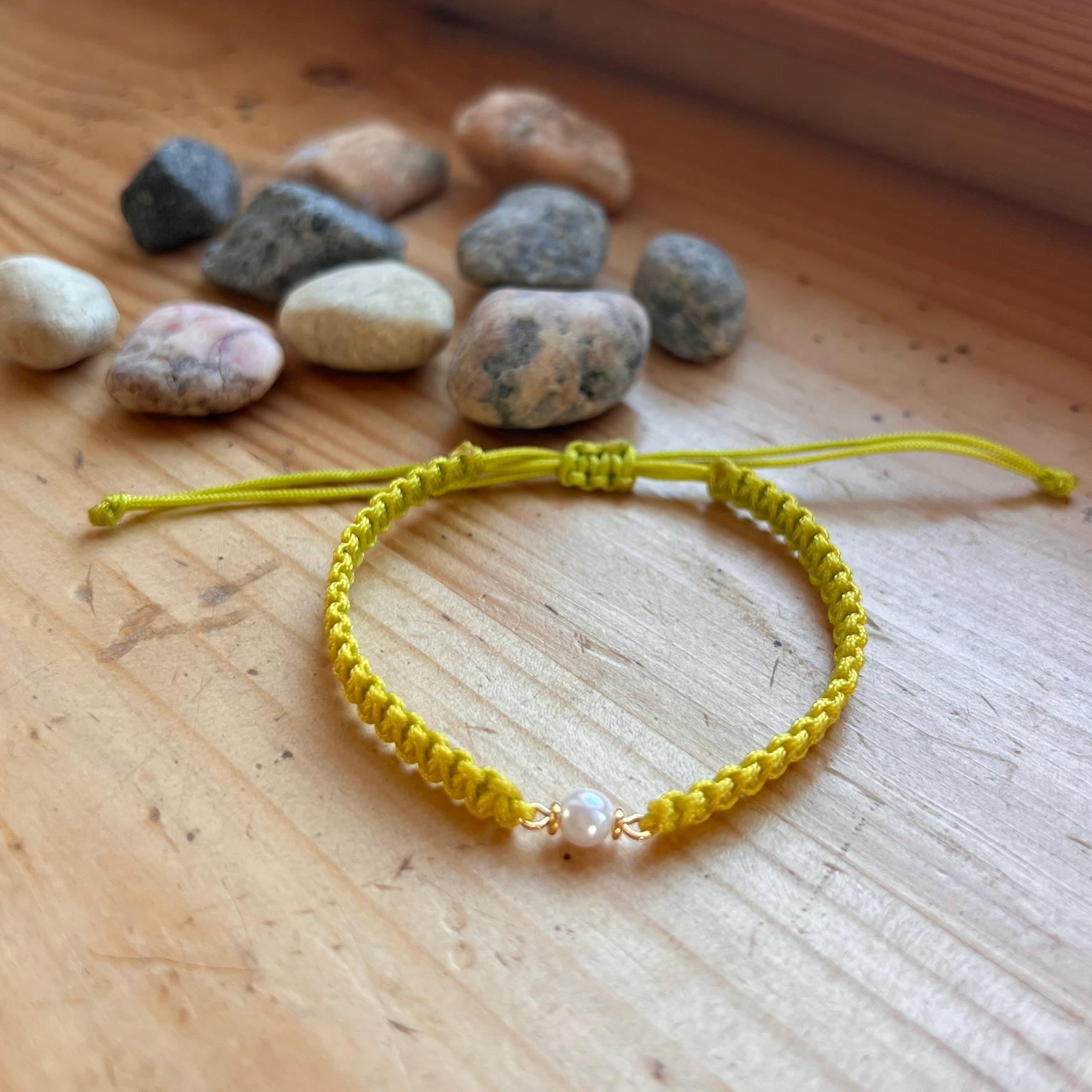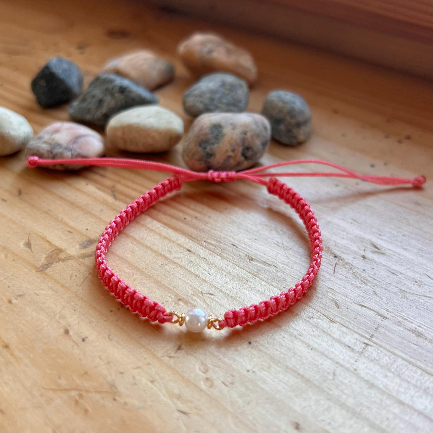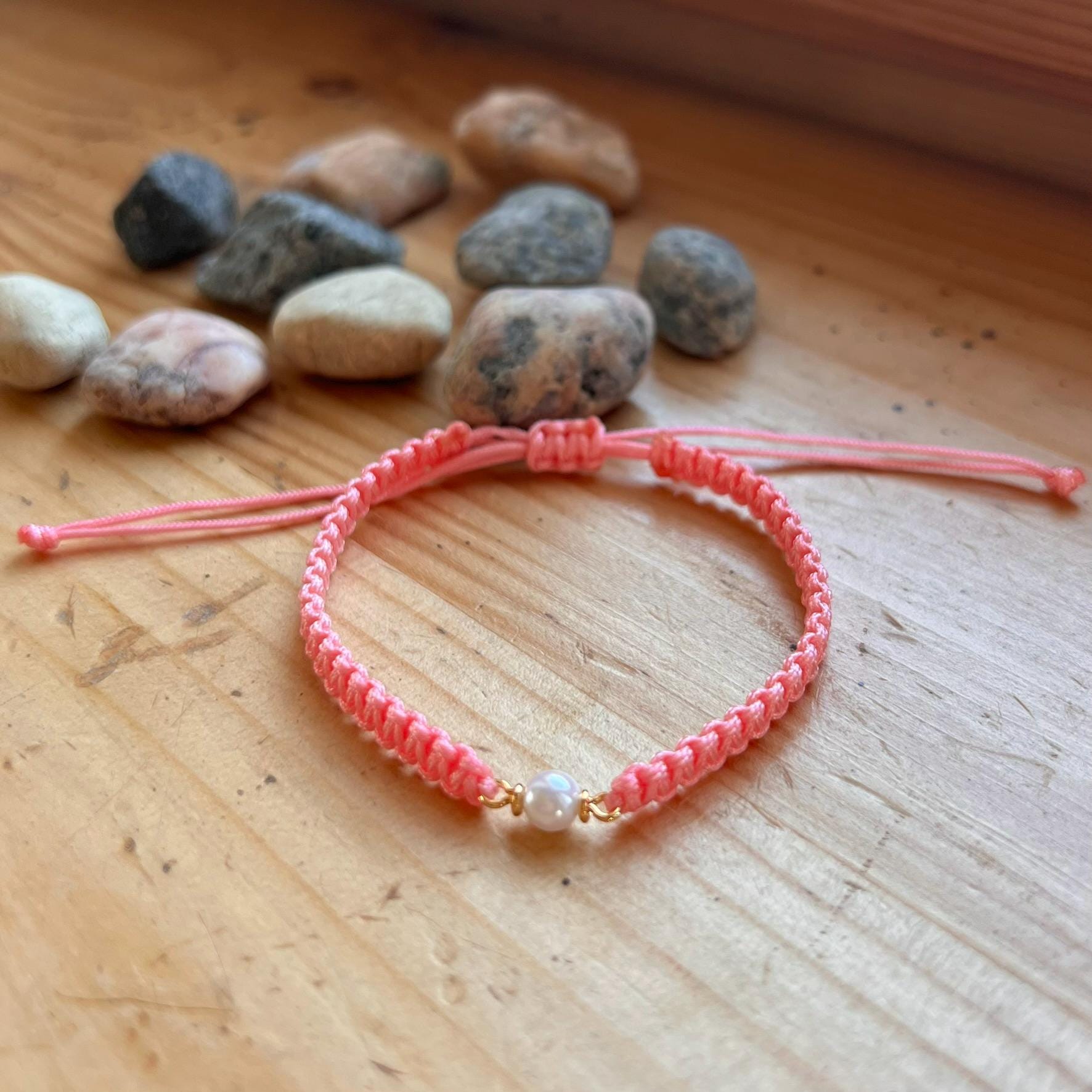 Macrame Pearl Bracelet • Handmade Adjustable • Minimalist • Elegant Friendship Bracelet